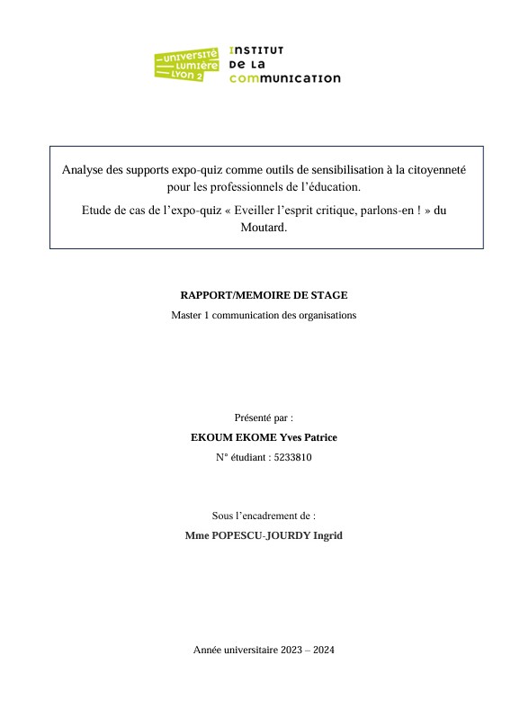 Mémoire de fin d'études M2 - Université Lumière Lyon 2