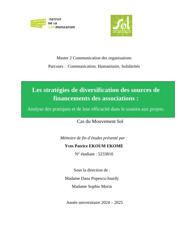 Mémoire sur les stratégies de diversification des sources de financement des associations